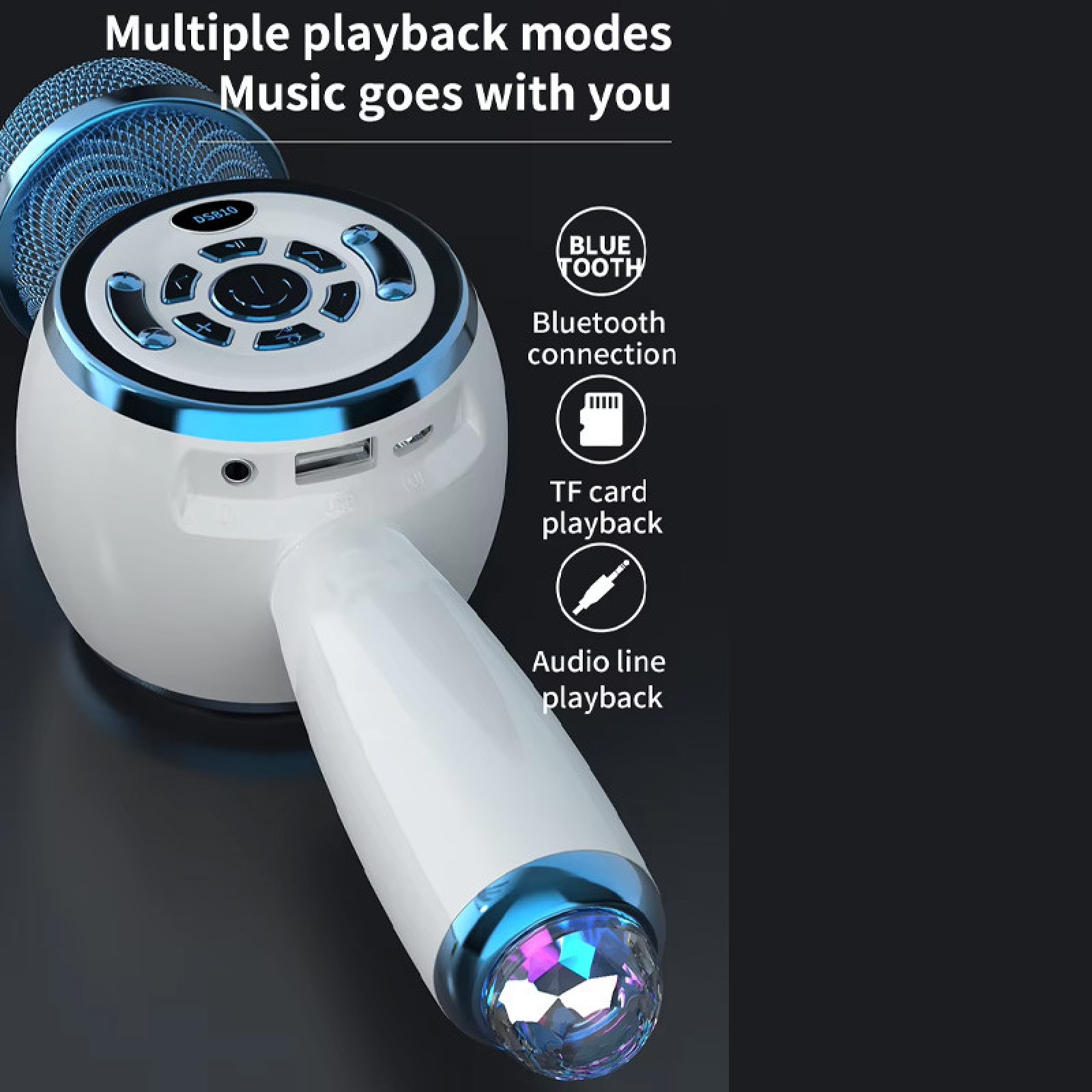 Додатково мікрофон оснащений диско-світлом, що створює атмосферу свята та веселощів, ідеально підходячи для вечірок та караоке-вечерів.