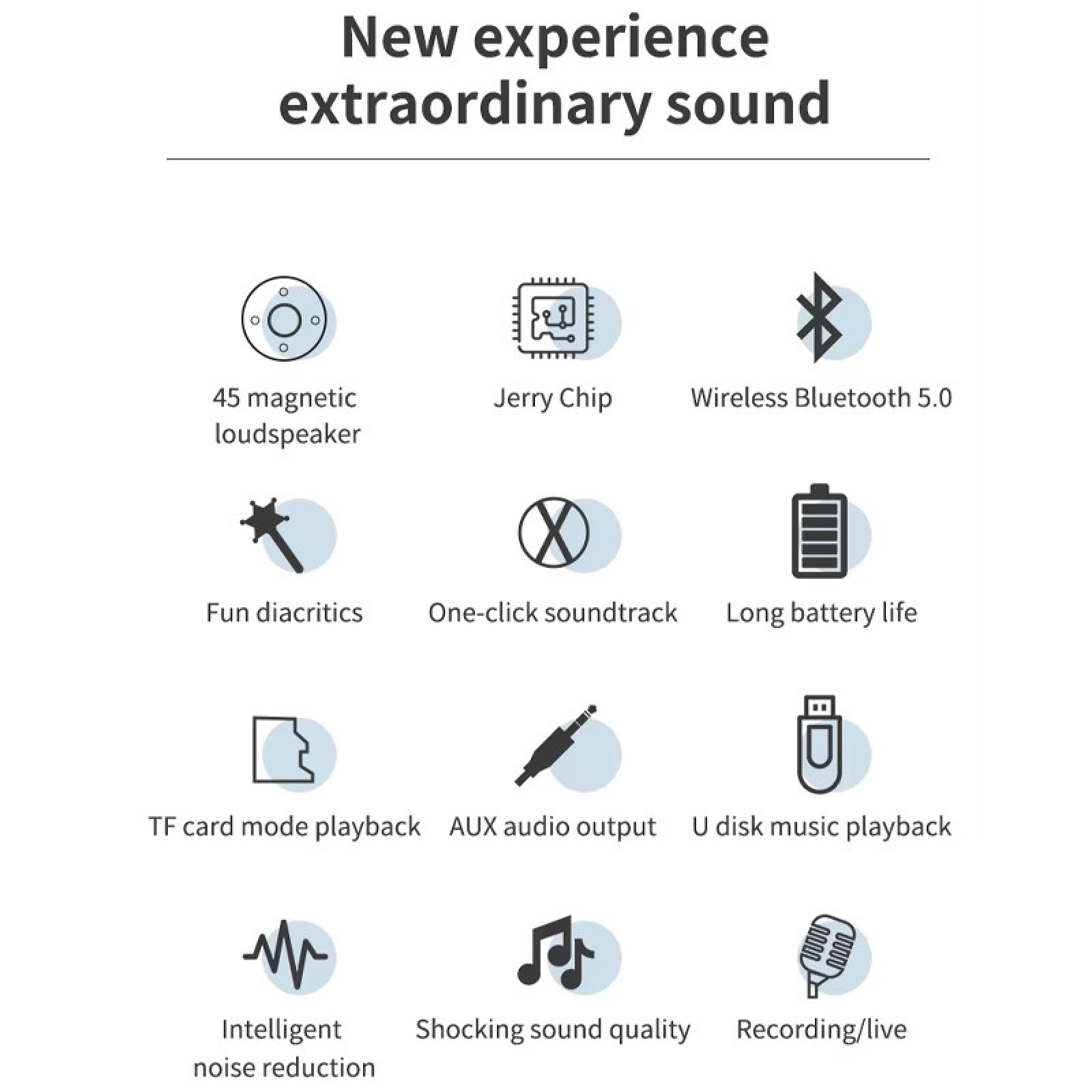 Караоке Мікрофон-колонка оснащений вбудованим динаміком потужністю 3W, що забезпечує чисте та якісне звучання.