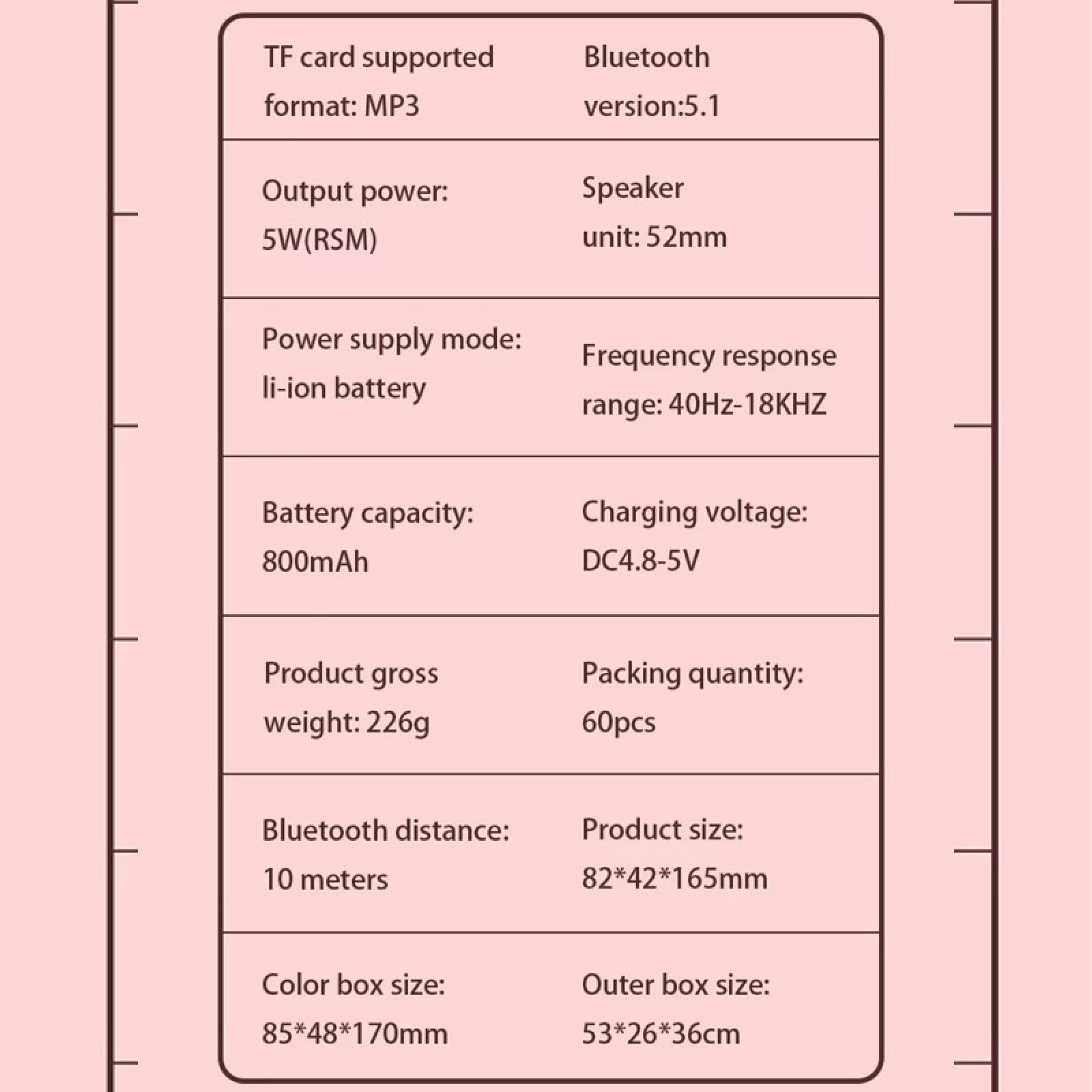 Вбудована літієва батарея 18650 ємністю 800 мАч забезпечує до 2-3 годин безперервного відтворення або використання для спілкування.