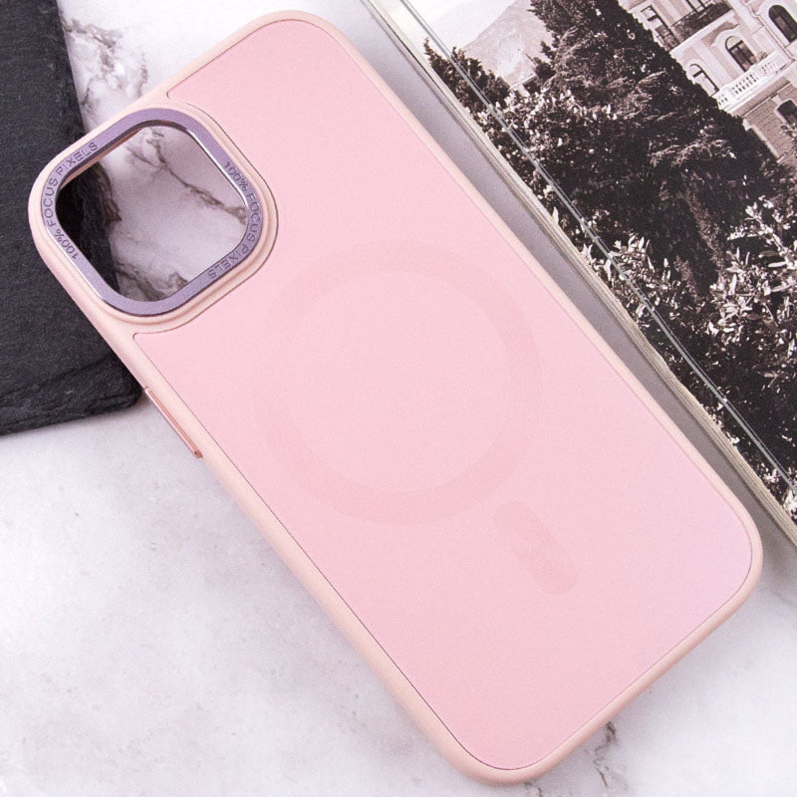 Чехол TPU+Glass Sapphire Midnight Open Camera with MagSafe для Apple iPhone 15 (6.1"), Розовый / Pink Sand