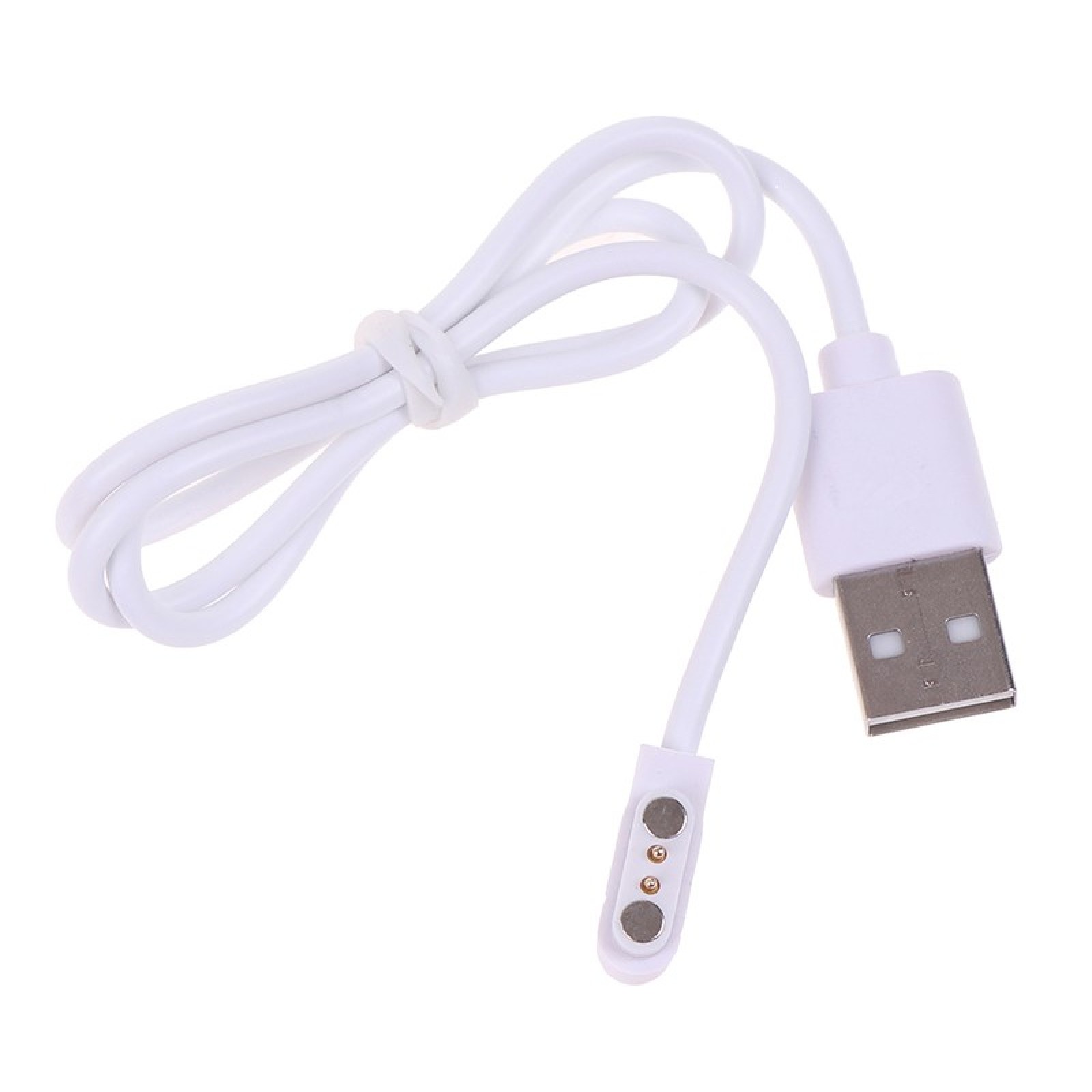Магнитный зарядный USB кабель для смарт-часов, черного цвета, длиной 50 см. С одной стороны USB Type A, а с другой 2 магнитные коннектора, расстояние между которыми 2.84 мм.